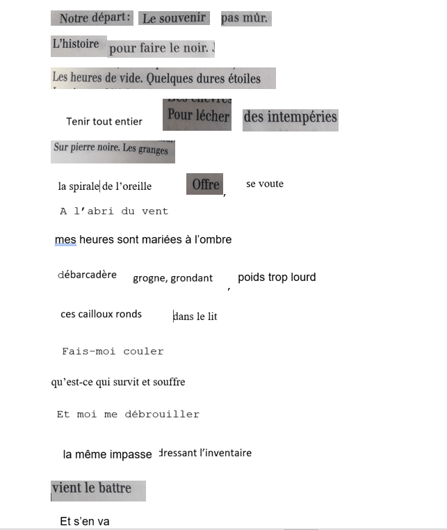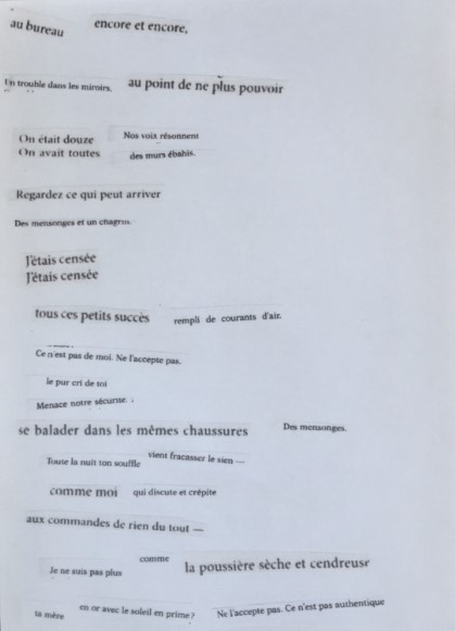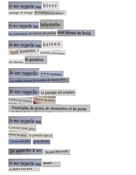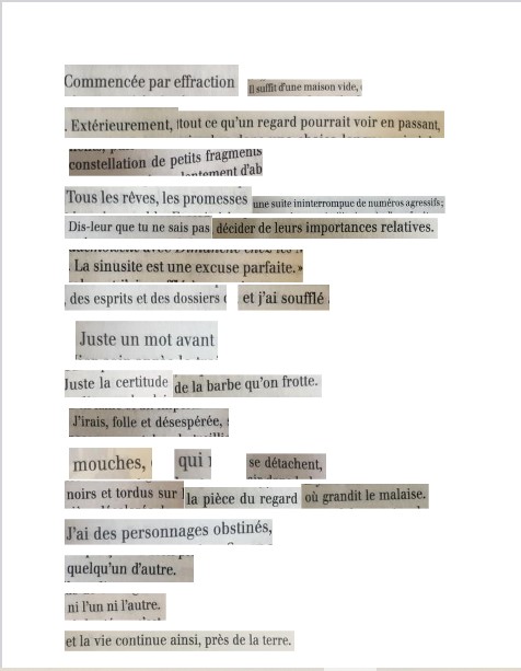 Au-delà de l’hommage, ces textes sont pour moi une manière d’assumer une grande part de ma recherche d’écriture et d’animatrice d’atelier autour de l’uncréativ writing (Kenneth GOLDSMITH). J’utilise régulièrement le cut-up en atelier pour faire créer aux participants des textes collectifs pour détourner et poétiser des thématiques.